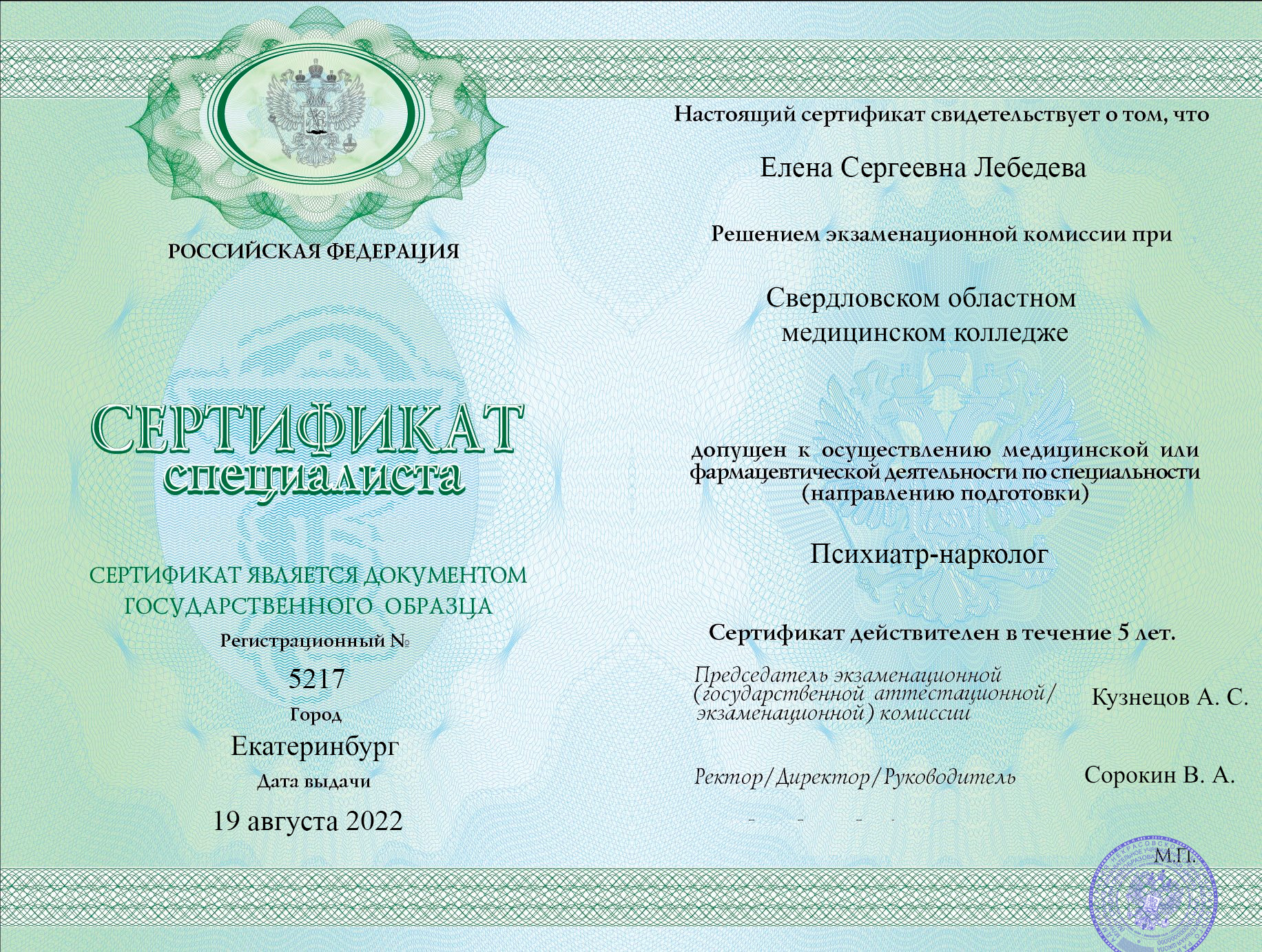 Елена Сергеевна Лебедева врач нарколог клиники доктора Стукаловой в Радужном